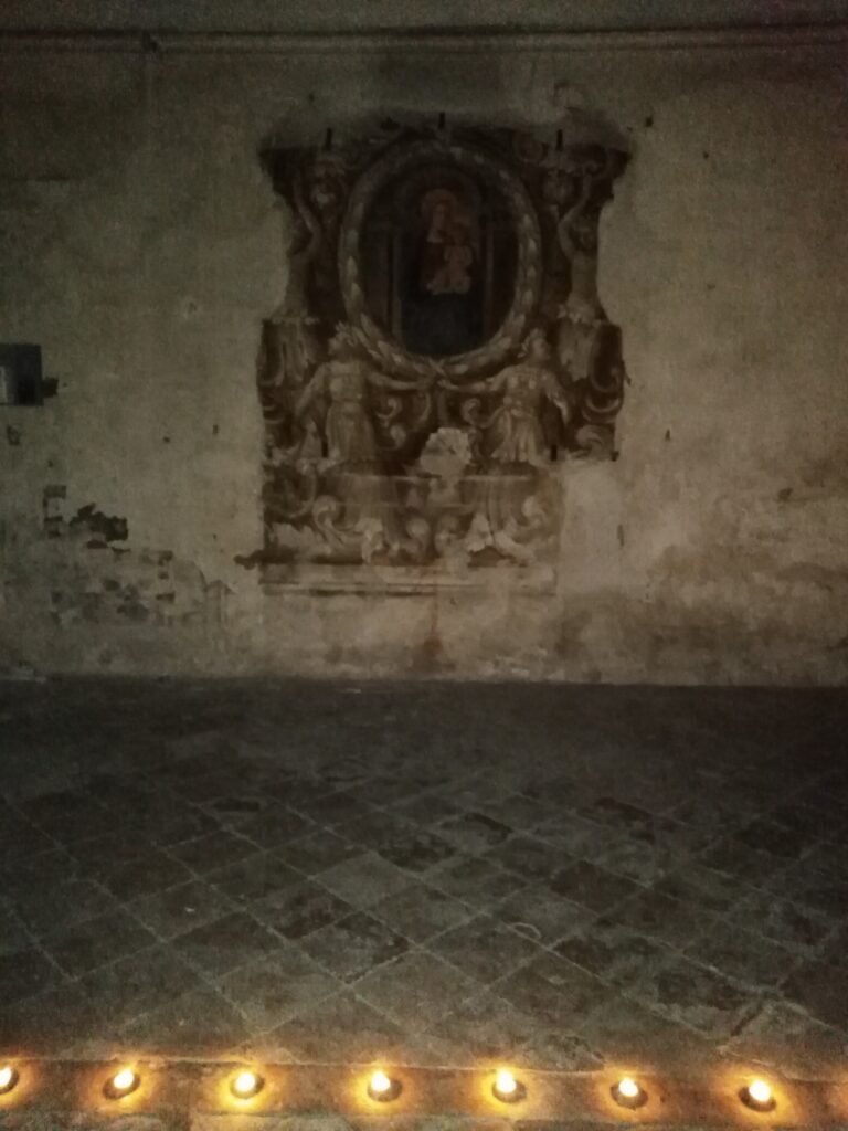 I chose to install Marra’s works using the Renaissance lighting technique, candles.